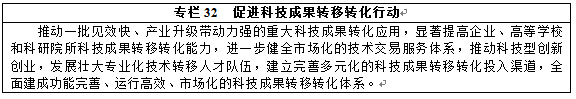 实施促进科技成果转移转化行动,进一步破除制约科技成果转移转化的体制机制障碍,完善相关配套措施,强化技术转移机制建设,加强科技成果权益管理改革,激发科研人员创新创业活力。